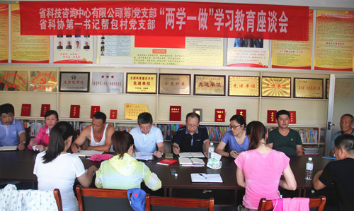 在省科协第一书记帮包村西史家阁村村委会会议室,公司党员和帮包村党员齐聚一堂上党课,开展“两学一做”学习交流会,集中学习了党章、党纪党规和习近平总书记系列重要讲话,交流讨论了如何争做“四讲四有”合格党员。大家一致认为,做合格党员,就是要恪守信仰、弘扬作风、对党忠诚,以实际行动做到在党爱党、在党为党、在党护党,立足岗位、履职尽责、勇于担当、干事创业,扎实做好推进事业发展的各项工作。