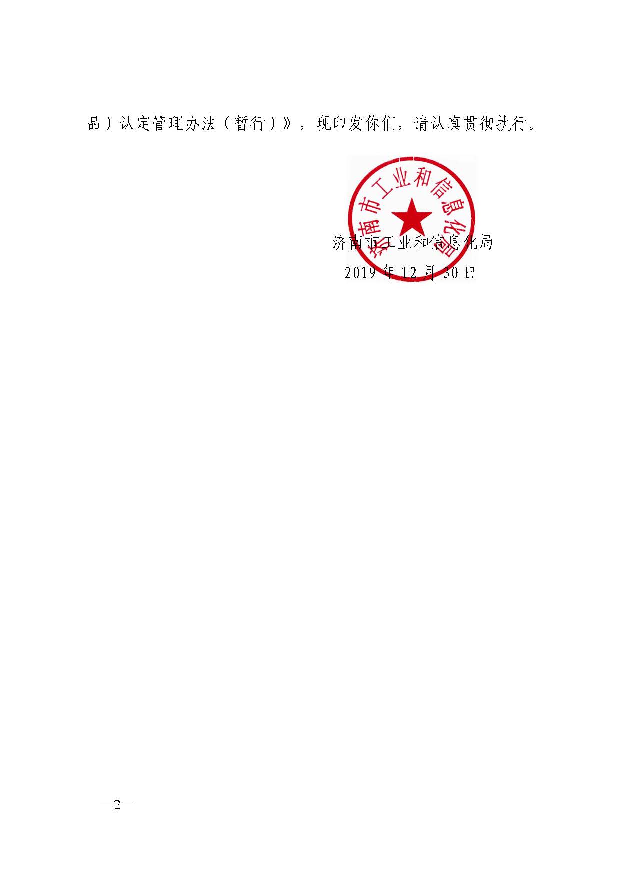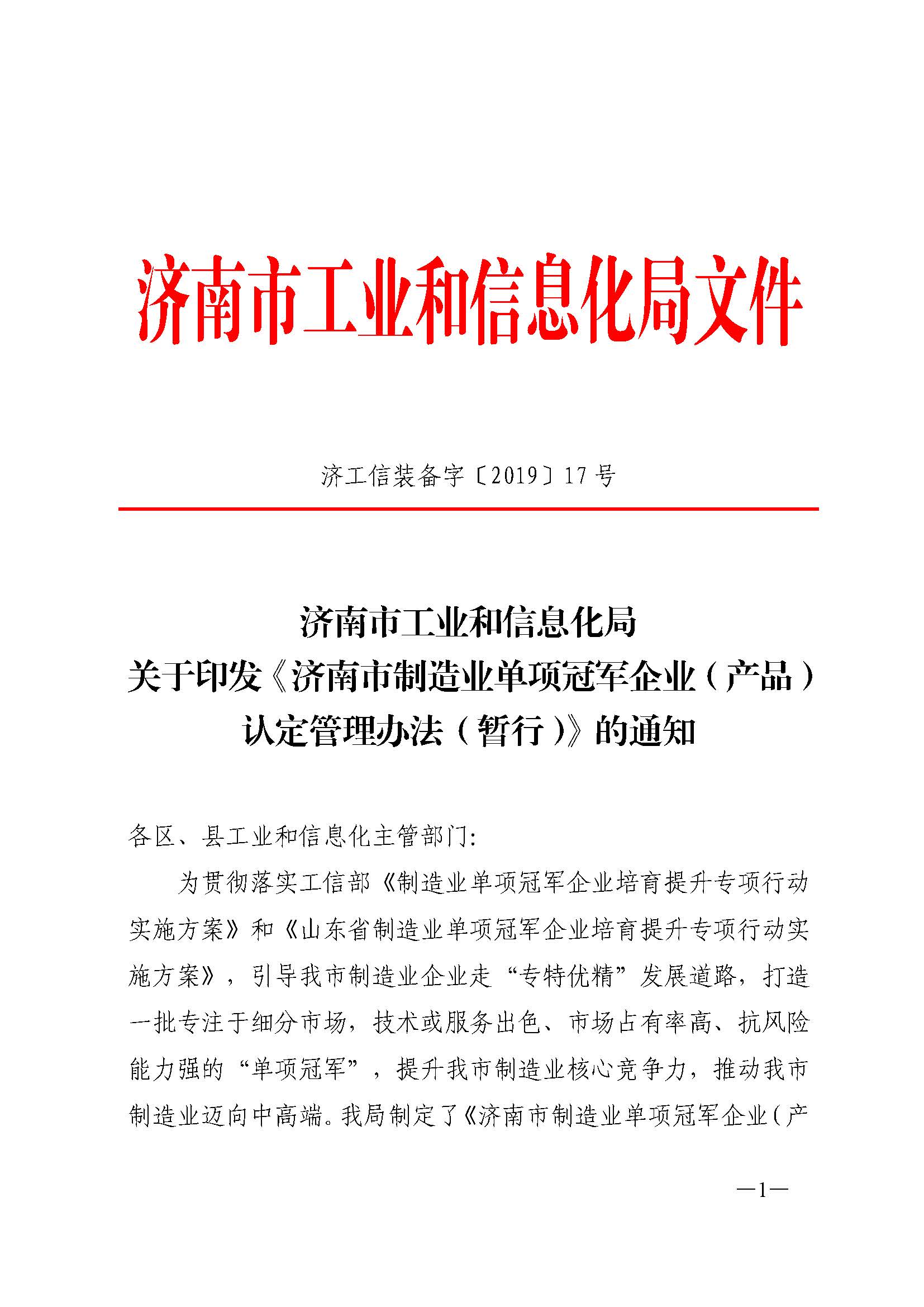 济南市工业和信息化局 关于印发《济南市制造业单项冠军企业(产品) 认定管理办法(暂行)》的通知 济工信装备字〔2019〕17号