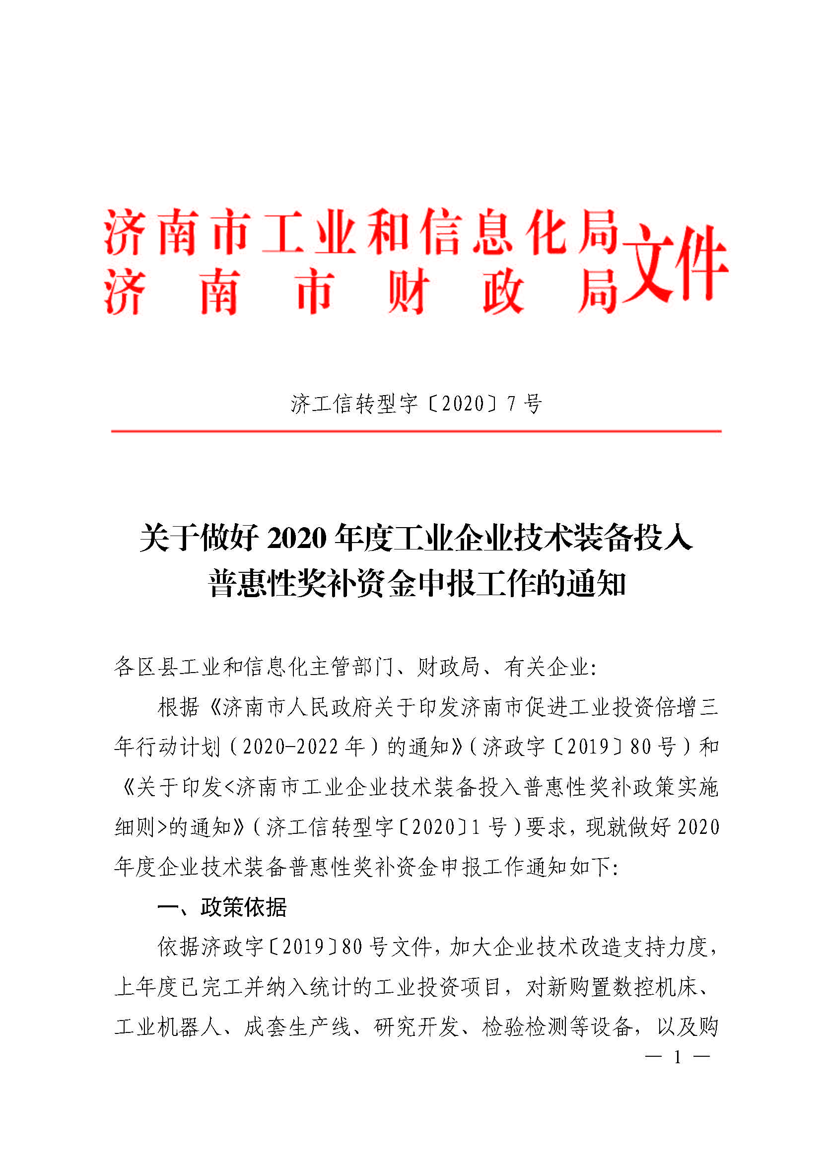 济工信转型字7号-关于做好2020年度工业企业技术装备投入普惠性奖补资金申报工作的通知.pdf