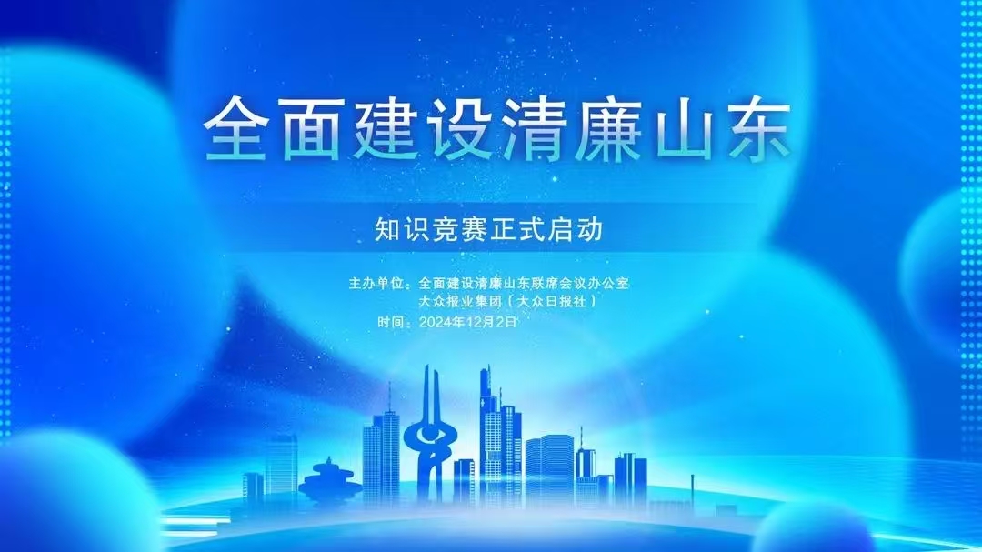为进一步凝聚思想共识,推动清廉山东建设向纵深发展,全面建设清廉山东联席会议办公室与大众报业集团(大众日报社)共同举办全面建设清廉山东知识竞赛。