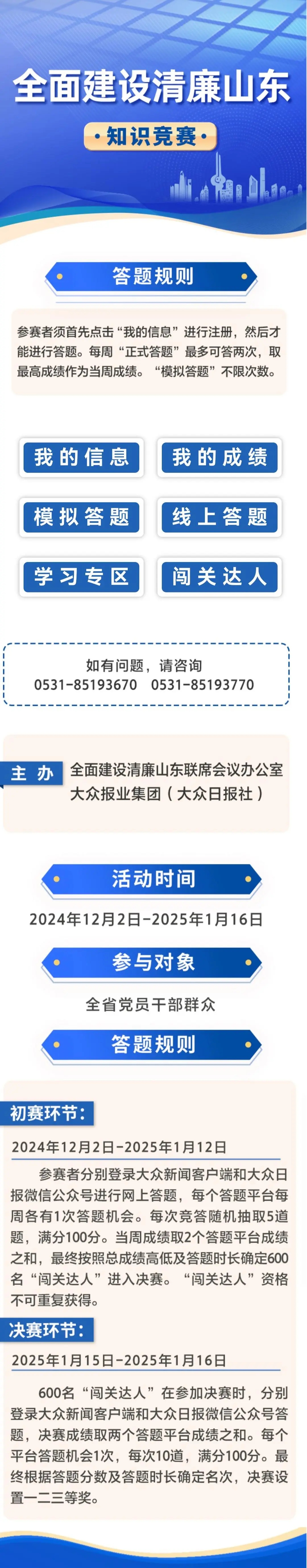 参赛者可分别登录大众新闻客户端、大众日报微信公众号进行网上答题。