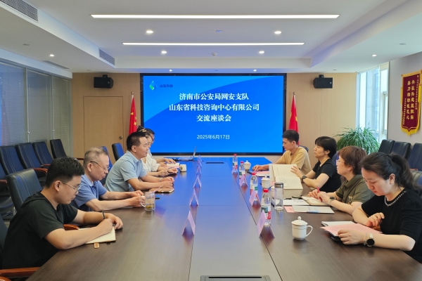 6月17日,济南市公安局网安支队三大队政委马金谧一行到山东省科技咨询中心有限公司、山东科技事务司法鉴定所进行交流座谈。公司、鉴定所负责人魏正杰热情接待并主持座谈。