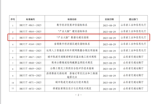 近日,咨询中心作为核心起草单位深度参与编制的DB37/T4865-2025《“产业大脑”数据仓建设指南》,经山东省市场监督管理局批准发布。该标准将于2025年8月29日正式实施,为全省产业数字化升级提供关键技术规范支撑。