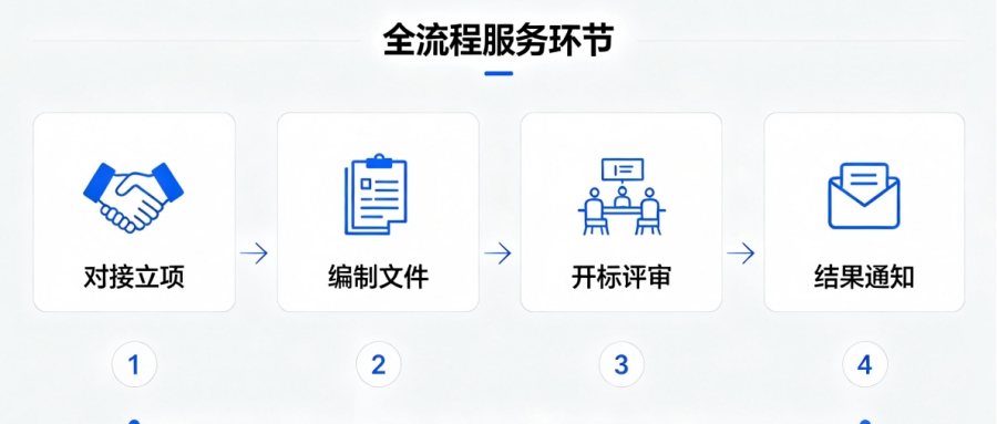 公司建立了覆盖“对接立项--编制文件--开标评审--结果通知”的全流程标准化服务体系,形成闭环管理机制: