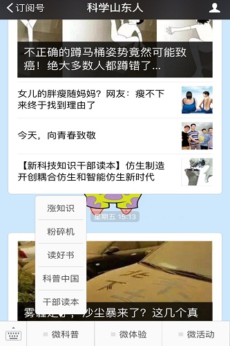 为迎接“5·30全国科技工作者日”的到来,支持科技工作者积极投身科技创新和经济建设主战场,为科技工作者学习和了解科技和产业变革前沿的科技创新提供渠道和平台,近日,山东省科协通过微信公众号“科学山东人”“学术与学会”,开通了“新科技知识干部读本”专栏,内容涵盖重大的科学发现、重大的科技突破、重要的科技应用、新兴产业发展趋势等方面,突出通俗性、前瞻性、引导性和实用性。同时,微信也将定时推送相关新科技知识读本内容。