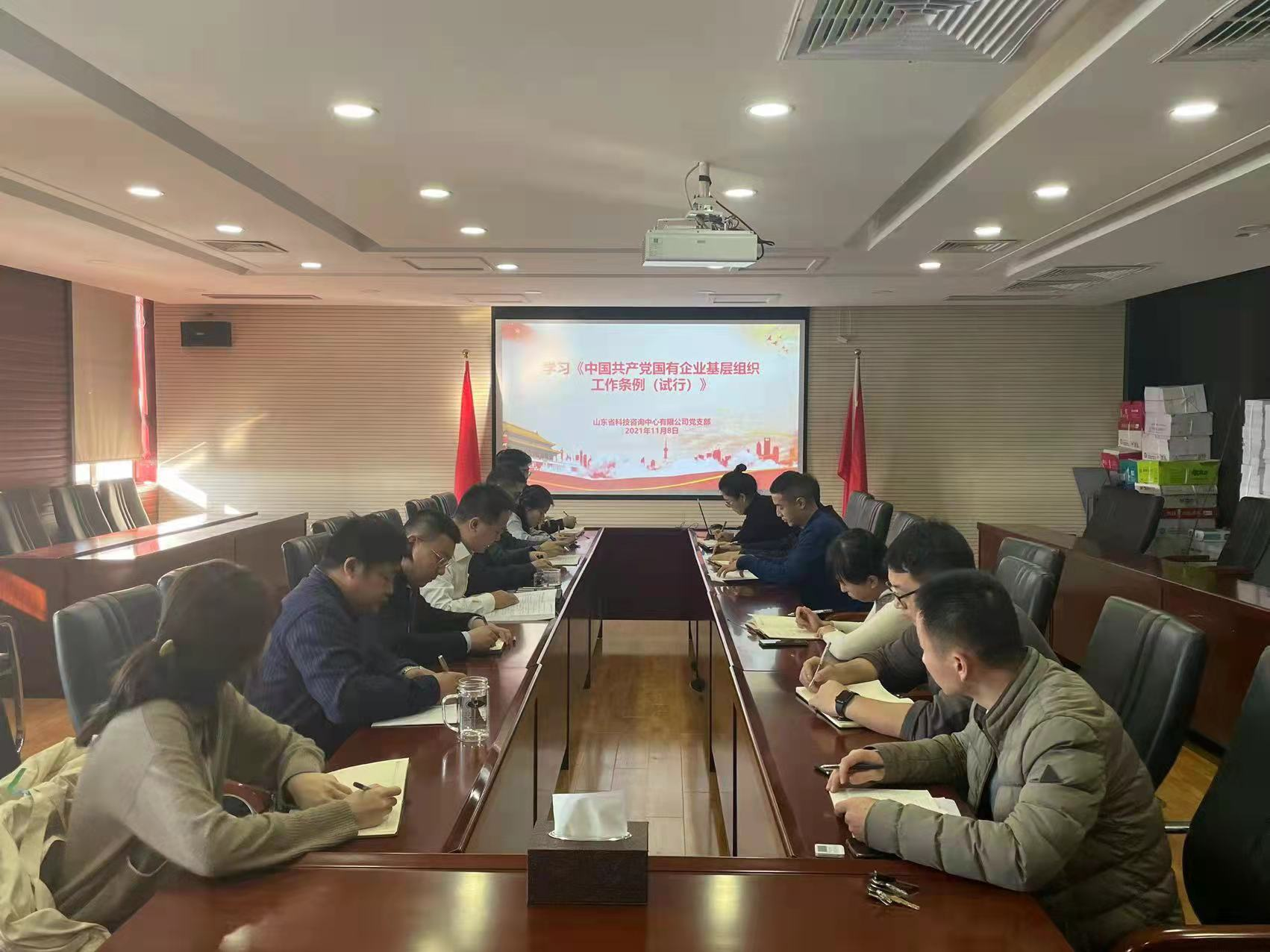 为贯彻落实新时代党的建设总要求和新时代党的组织路线,坚持和加强党对国有企业的全面领导,11月8日下午,山东省科技咨询中心党支部召开党员会议,专题学习了《中国共产党国有企业基层组织工作条例(试行)》(以下简称《条例》)。党支部书记魏正杰进行了领学。